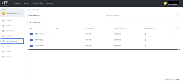 You will see the Dataroom with folders and files available. Browse or use the search bar at the top right to find specific documents or folders.